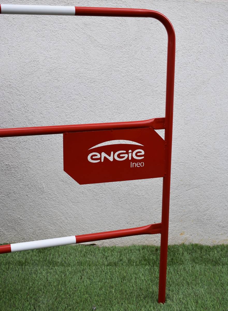 Les Barrières Rouges ou couleurs RAL de votre choix peuvent être découpées au laser pour les logos ou les autocollants vinyles au couleurs de votre entreprise.