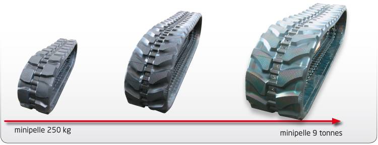 Chenilles caoutchouc pour mini pelle, et mini dumper